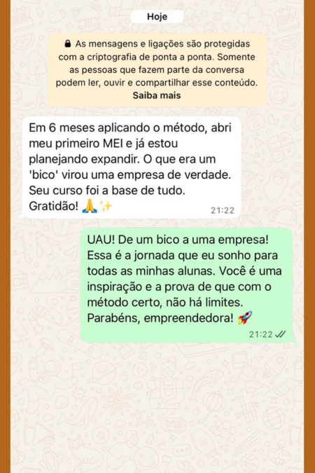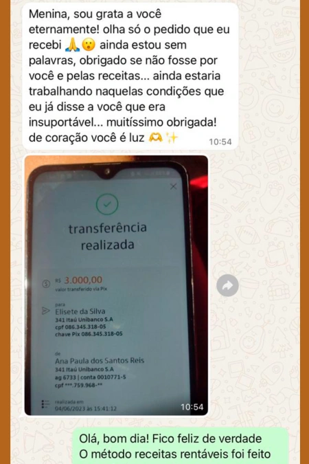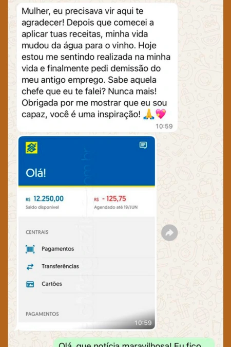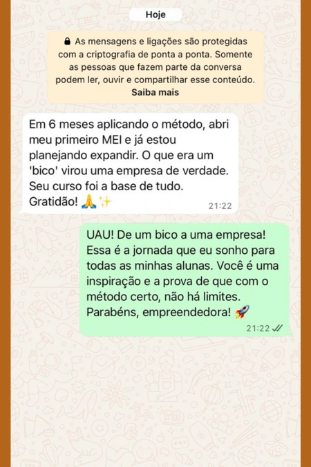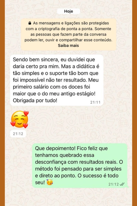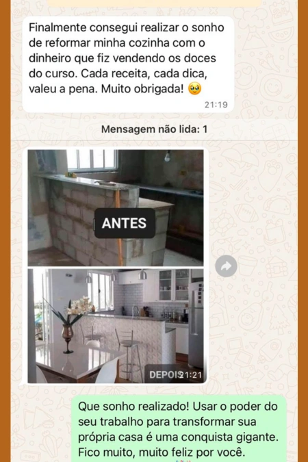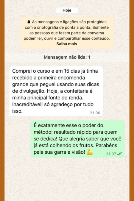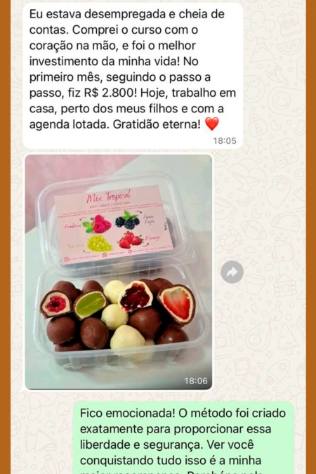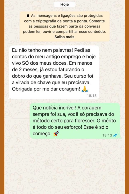 O começo foi uma luta diária contra o medo, as críticas e a exaustão de equilibrar a família com a produção caseira. Mas com muita garra, cada desafio superado e cada cliente satisfeito transformaram a luta pela sobrevivência em um negócio sólido, que já faturou milhões de reais, e hoje te ensinará o passo a passo, com o método Receitas Rentáveis.